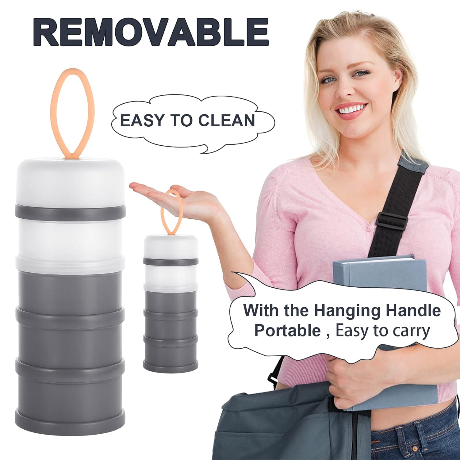 - Capacity - 4 layers design, you can put quantity of milk powder to be taken at one time in each layer box, you can carry 4 times of milk powder for baby outdoor need, very convenient and practical.