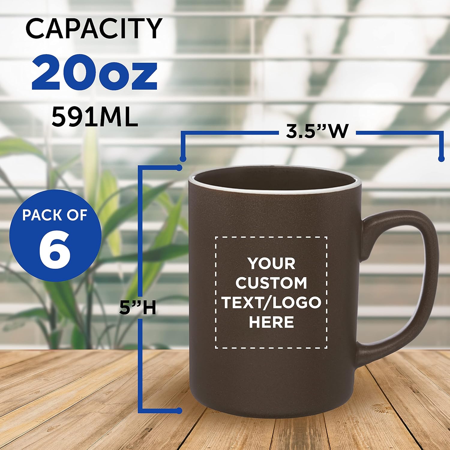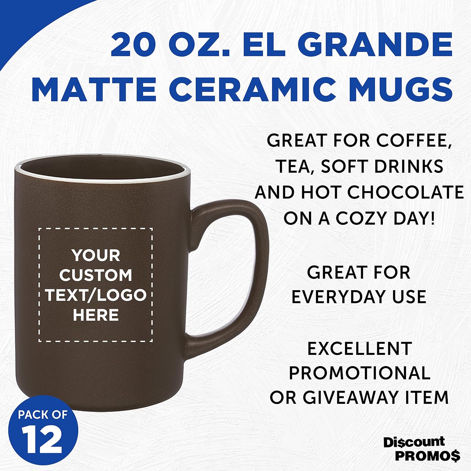 Custom El Grande Matte Ceramic Mugs 20 oz. Set of 12, Personalized Bulk Pack - Perfect for Tea, Espresso, Cappuccino, Hot Cocoa - Dark Brown