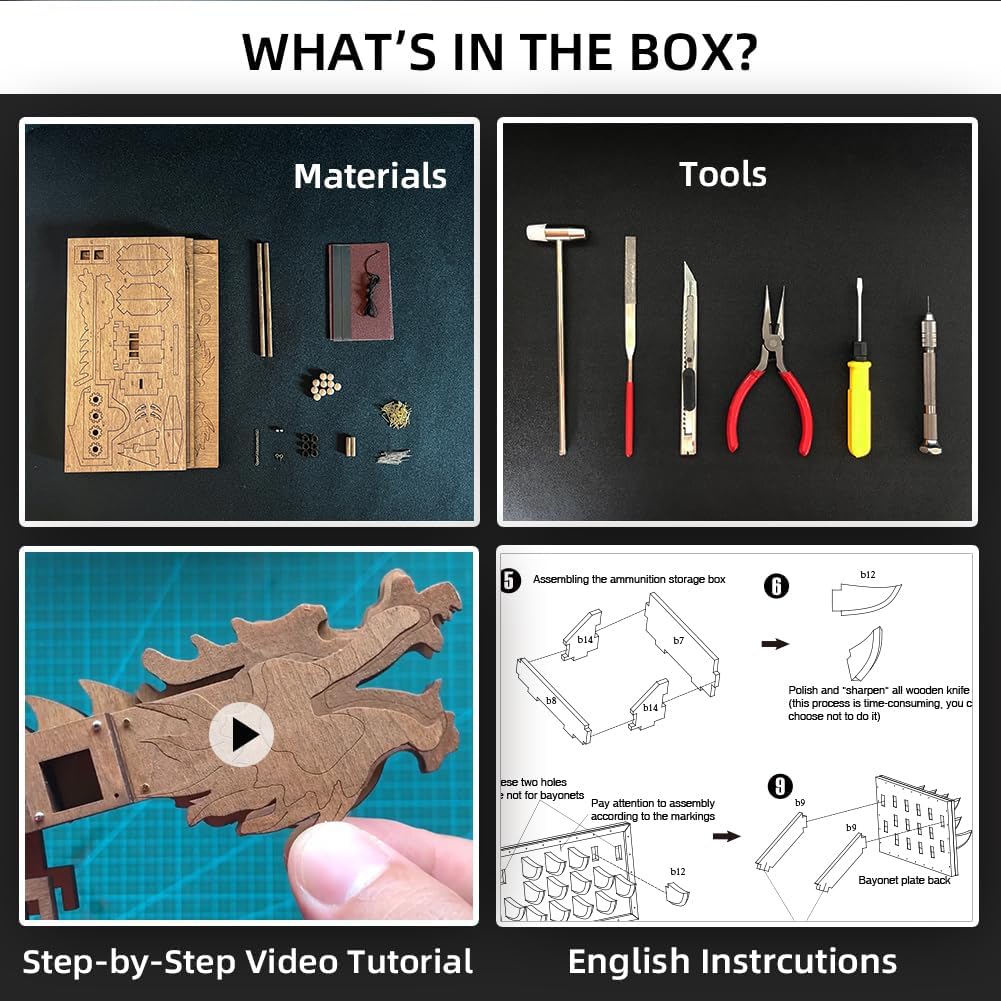 - WHAT'S IN THE BOX:The model kit includes the materials needed for assembly, a set of assembly tools, an English assembly manual. Paper instructions and video tutorials provide step-by-step detailed instructions.You only need to bring your glue and enough patience, you can enjoy the process of immersive assembly and the joy of successful assembly.