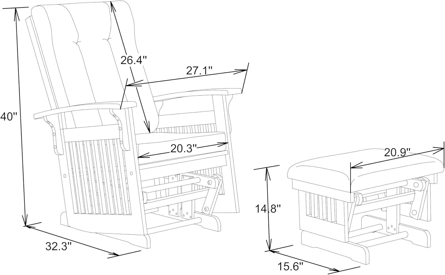 - Stylish Appearance:Our glider rocker with ottoman set is finished in a polished oak stain, highlighting its beautiful, antique-style design. This look adds a refreshing and cozy touch to your room, making it a perfect spot for relaxing, reading, or watching TV.