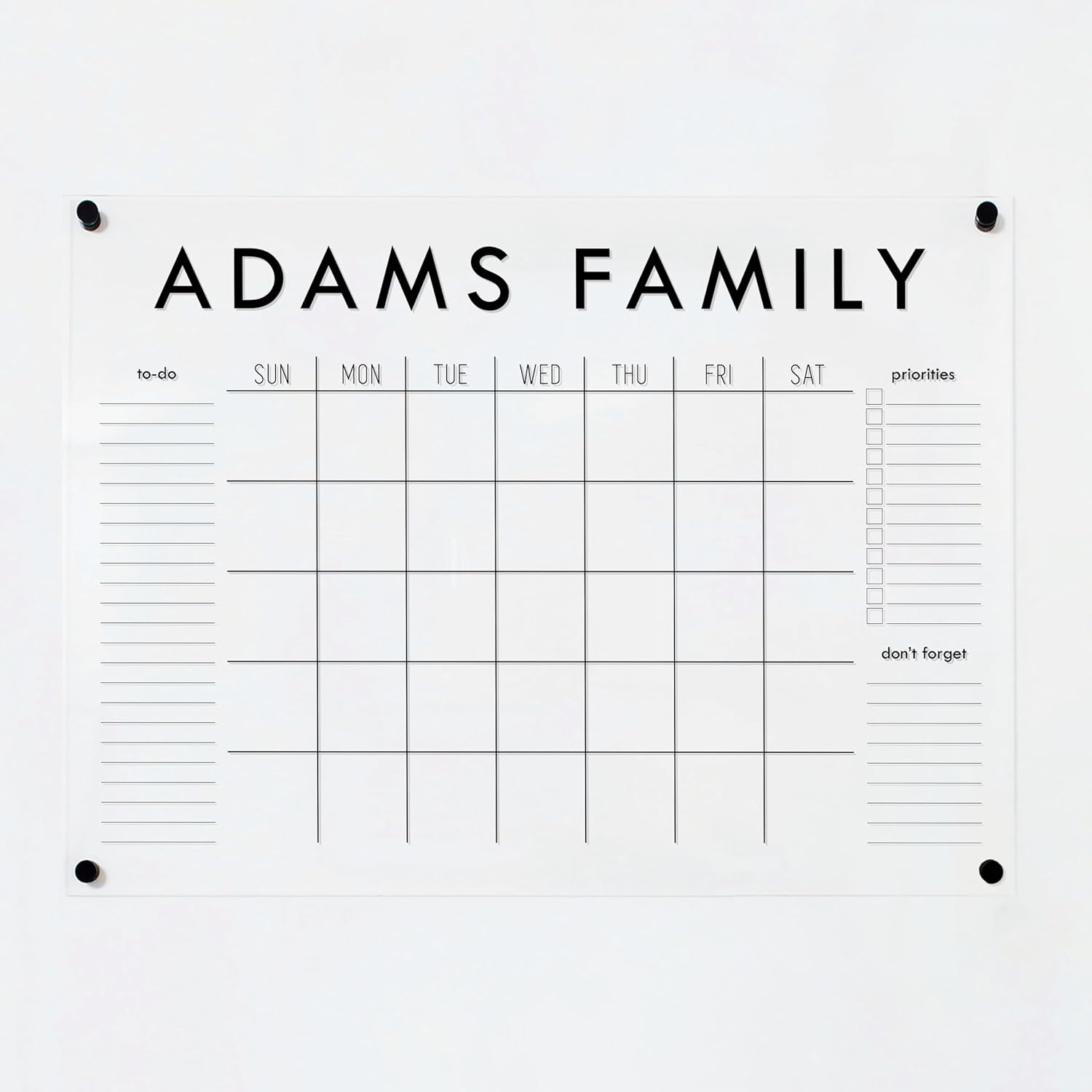 Personalized Clear Acrylic Calendar for Wall, Calendar Whiteboard for Wall, Dry Erase Wall Calendar, Wall Calendar Organizer System for Home (Block, Black, 31"W x 23"H)