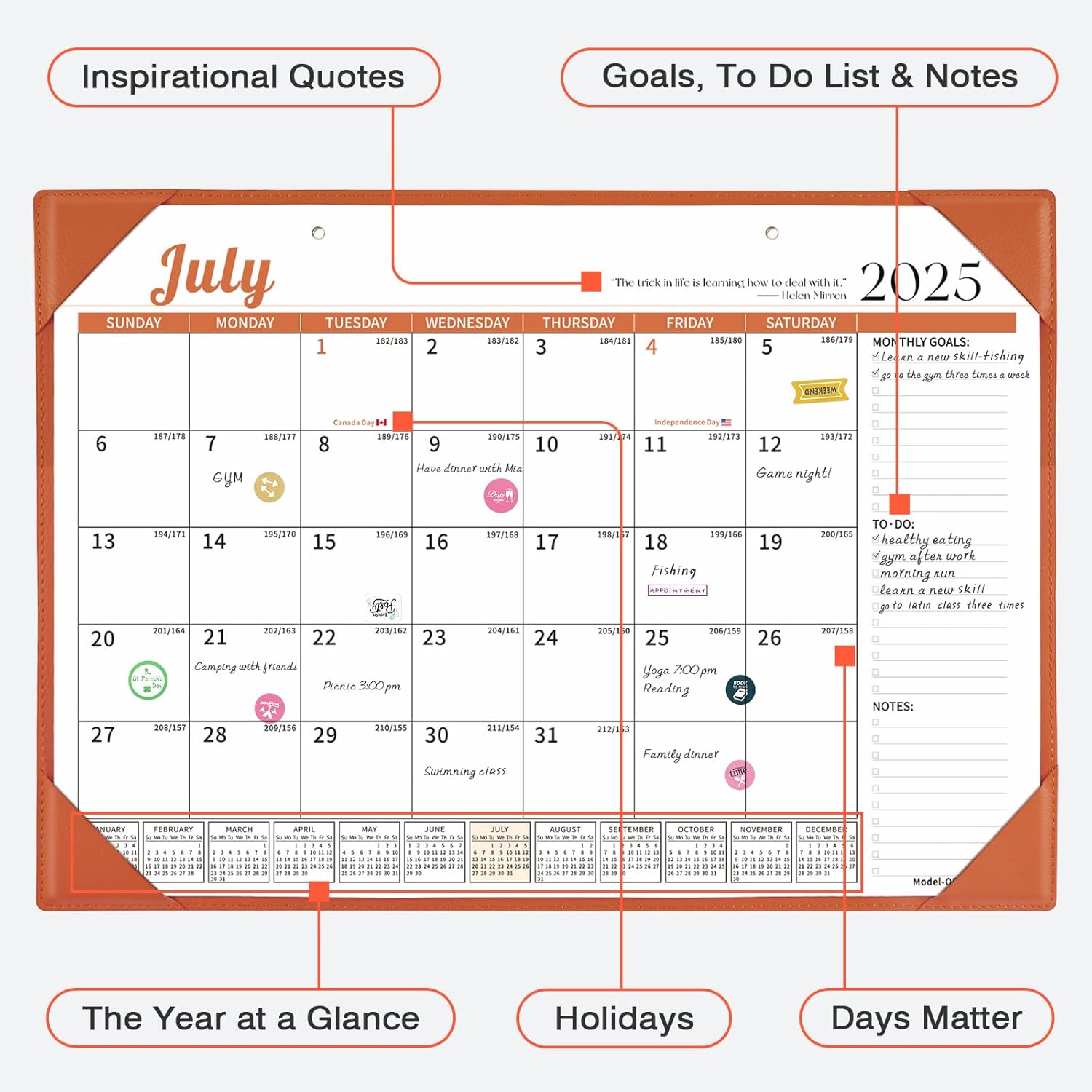 - Monthly Desk Calendar with Stickers: One month per page layout help you organize your monthly plans and goals. The calendar set includes planning stickers. A variety of planning stickers can also add some interest to the calendar.