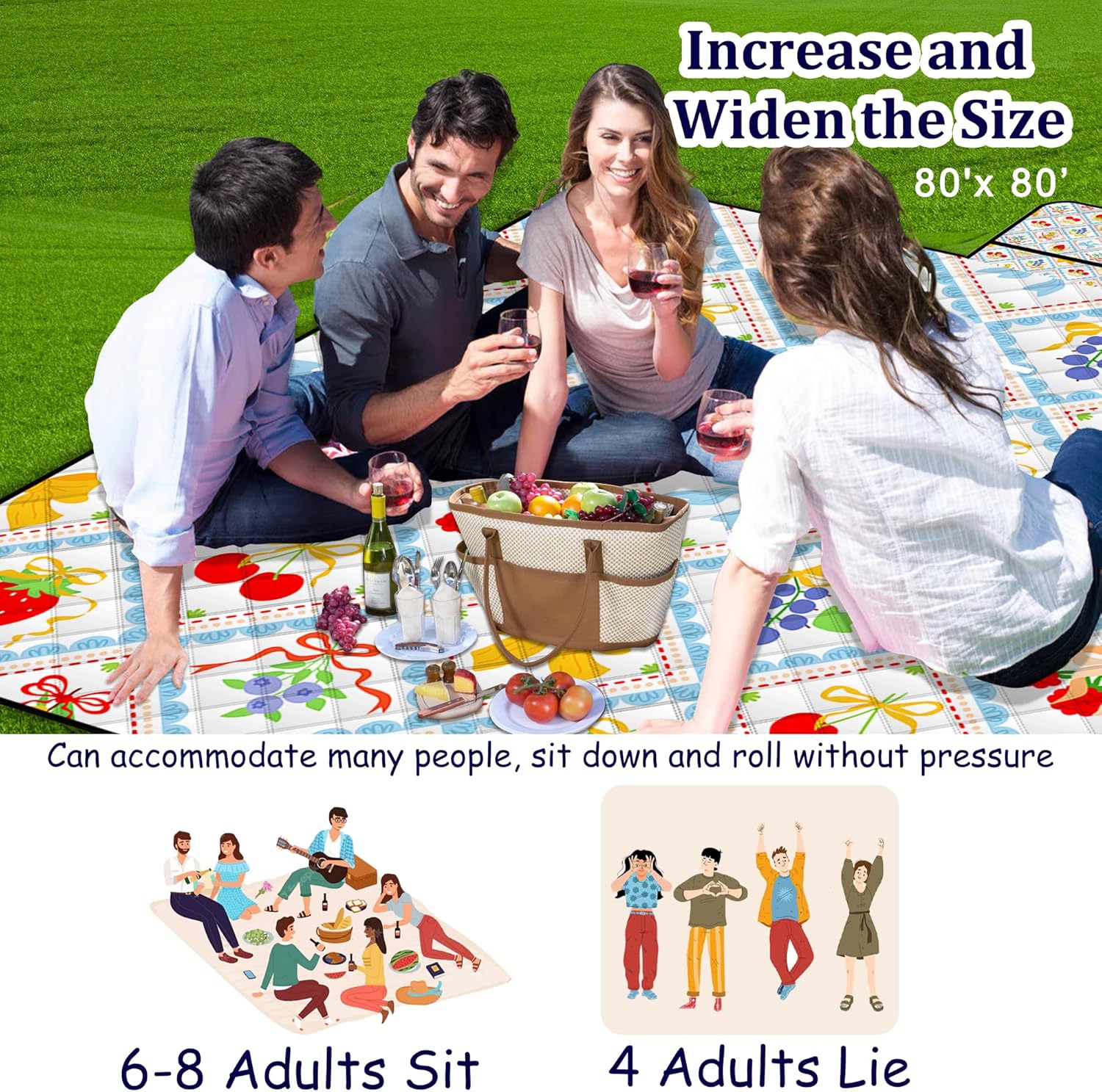 - 【🍑🍎🍊🍉🍅Larger and Thicker Design】This waterproof blanket can accommodate 6-8 people and can be used as a beach blanket,It create a designated space for family and friends to gather, eat together, play games, or simply enjoy each other's outdoors. They promote a sense of togetherness and make outdoor experiences more memorable and comfortable.